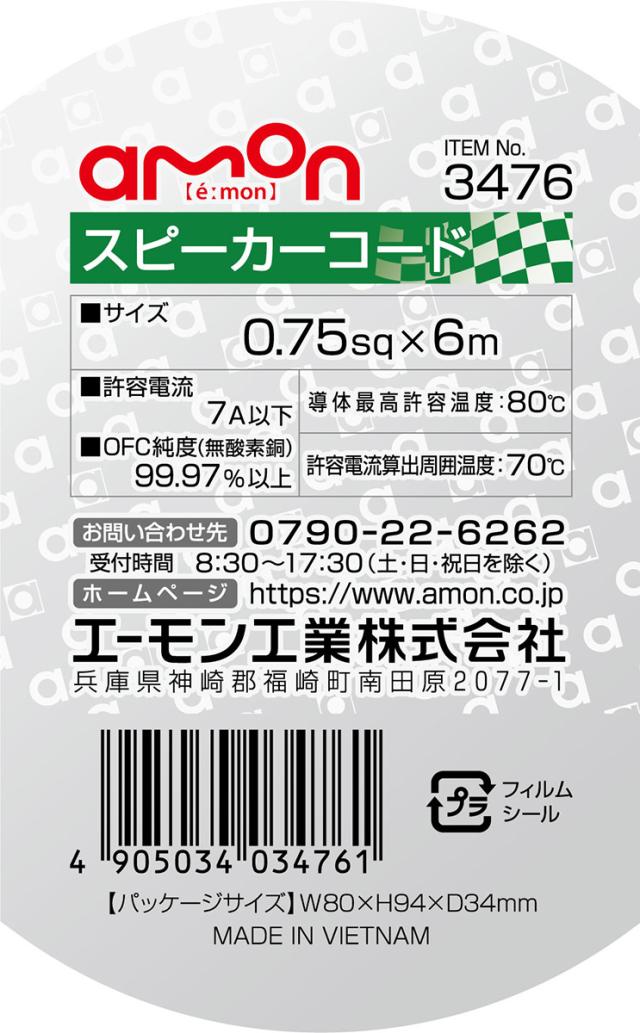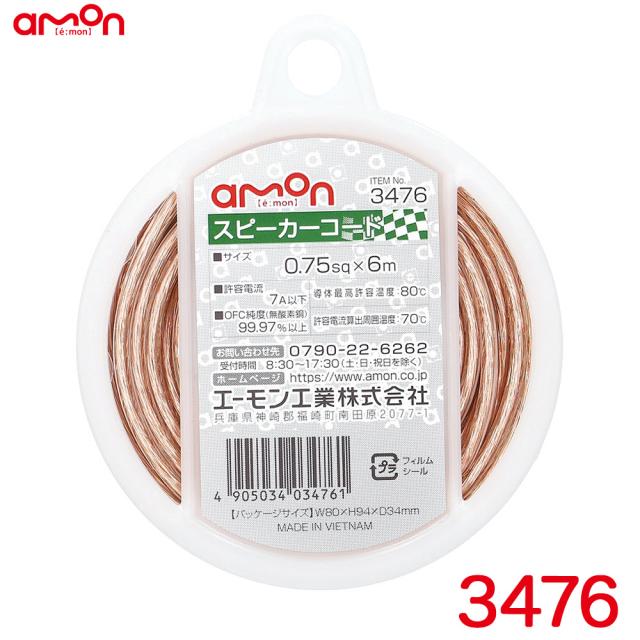 エーモン/amon スピーカーコード 0.75sq 6m OFC純度99.97%以上 配線コード 許容電流7A以下 3476