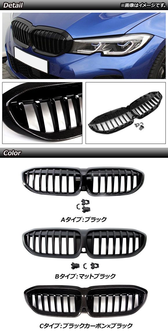フロントグリルカバー BMW 3シリーズ G20/G28 カメラ装着車対応 2019年〜 ブラック Aタイプ ABS製 シングルバー カメラホール付き AP-FG322-A