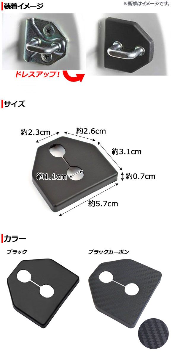 ドアロックストライカーカバー ブラックカーボン ABS樹脂 スバル汎用 入数:1セット(4個) AP-AS305-BKC