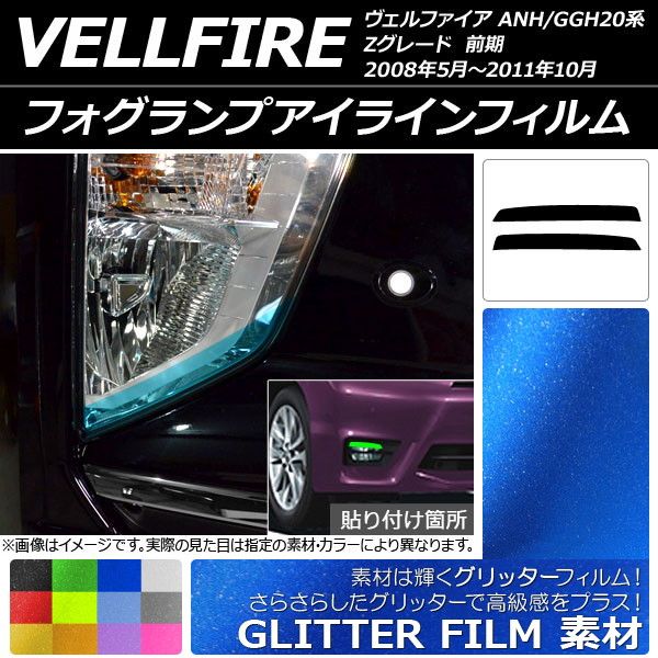 フォグランプアイラインフィルム グリッタータイプ トヨタ ヴェルファイア ANH/GGH20系 Zグレード 前期 選べる12カラー 入数:1セット(2枚) AP-YLGL197 カラー: ブラック ホワイト レッド ブルー イエロー グリーン オレンジ パープル ピンク ライトイエロー ライトブルー ライトブラック