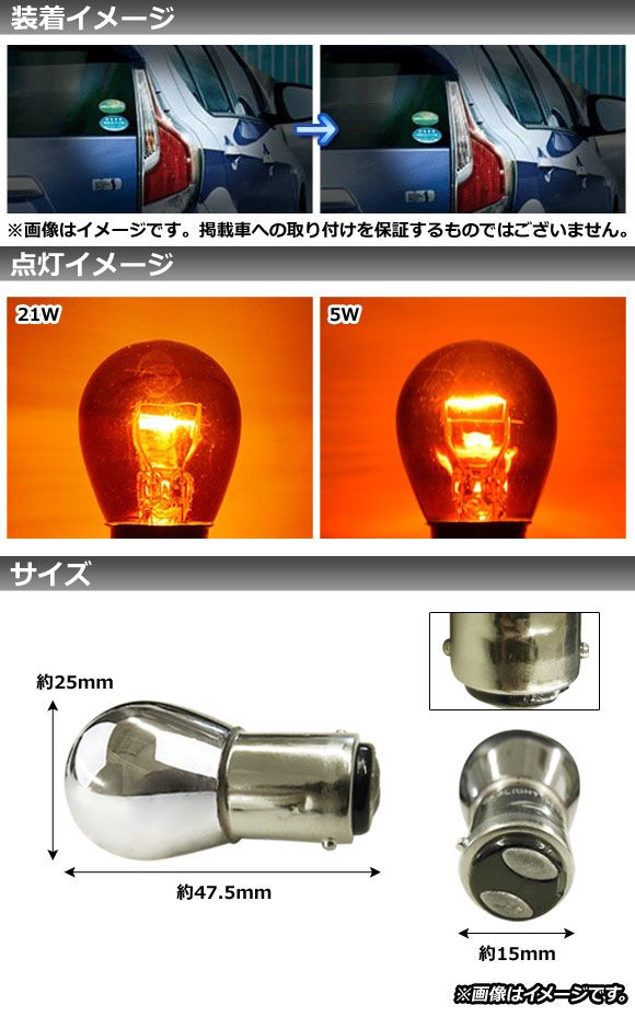 AP ステルスバルブ アンバー ハロゲン S25 ダブル球 ピン角180° 平行ピン 12V AP-LL301-AM 入数:2個