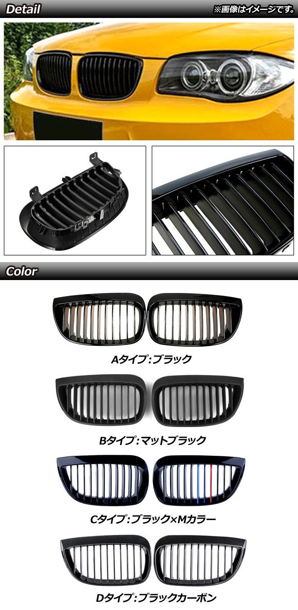 フロントグリルカバー BMW 1シリーズ E87 前期 2004年〜2007年 ブラック ABS製 シングルバー 入数:1セット(2個) AP-FG297-A