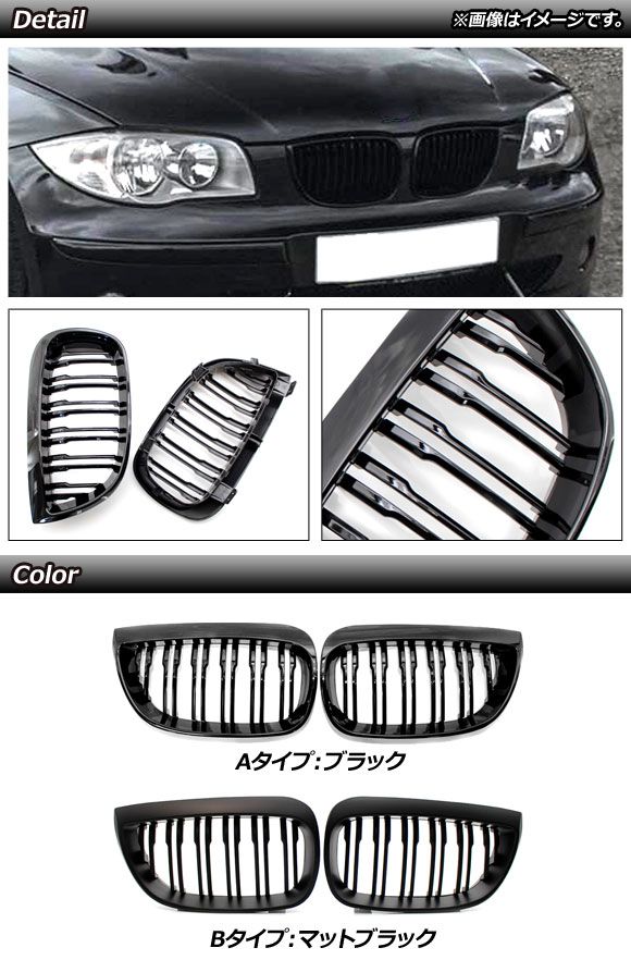 フロントグリルカバー BMW 1シリーズ E87 前期 2004年〜2007年 ブラック ABS製 ダブルバー 入数:1セット(2個) AP-FG296-A