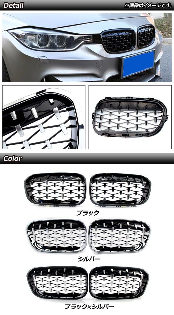 フロントグリルカバー BMW 1シリーズ F20/F21 後期 2015年〜2019年 ブラック×シルバー ABS製 入数:1セット(2個) AP-FG301-BKSI ダイヤモンド型グリル フロントグリルガーニッシュ バンパーグリルカバー バンパーグリルガーニッシュ グリルガーニッシュ グリルカバー バンパーガーニッシュ フロントグリル フロント フロントフェイス グリル バンパー カバー フレーム ガーニッシュ リム トリム ベゼル メッキ メッキパーツ プロテクト プロテクター 傷予防 傷付き防止 外装 外装パーツ パーツ エクステリア ドレスアップ カスタム カスタマイズ 装飾 装飾パーツ ABS ABS樹脂 黒 black 銀 silverブラック シルバー chrome クローム 1SERIES ビーエムダブリュー ビーエムダブル ビーエム automobile motorcar オートモービル モーターカー カー 車 自動車 車両 503646940