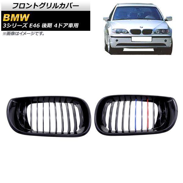 フロントグリルカバー BMW 3シリーズ E46 後期 4ドア車用 2002年〜2005年 ブラック×Mカラー Cタイプ ABS製 シングルバー 入数:1セット(2個) AP-FG312-C