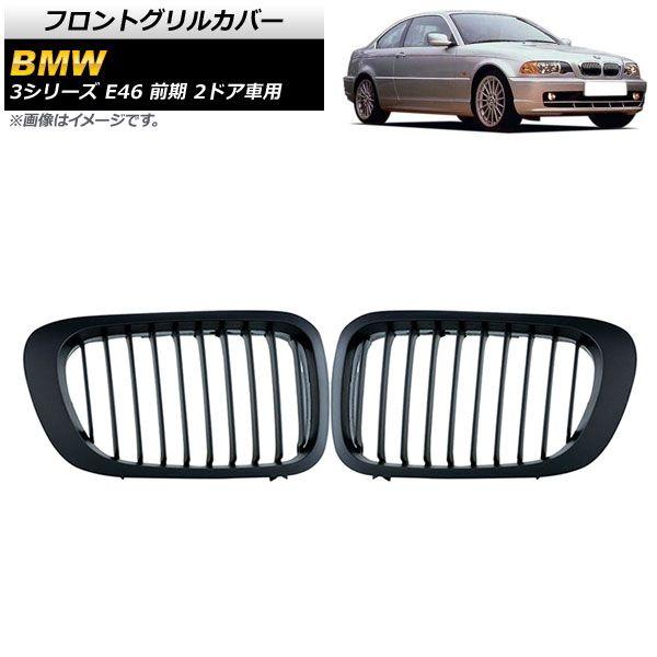 フロントグリルカバー BMW 3シリーズ E46 前期 2ドア車用 1998年〜2002年 マットブラック Bタイプ ABS製 シングルバー 入数:1セット(2個) AP-FG308-B