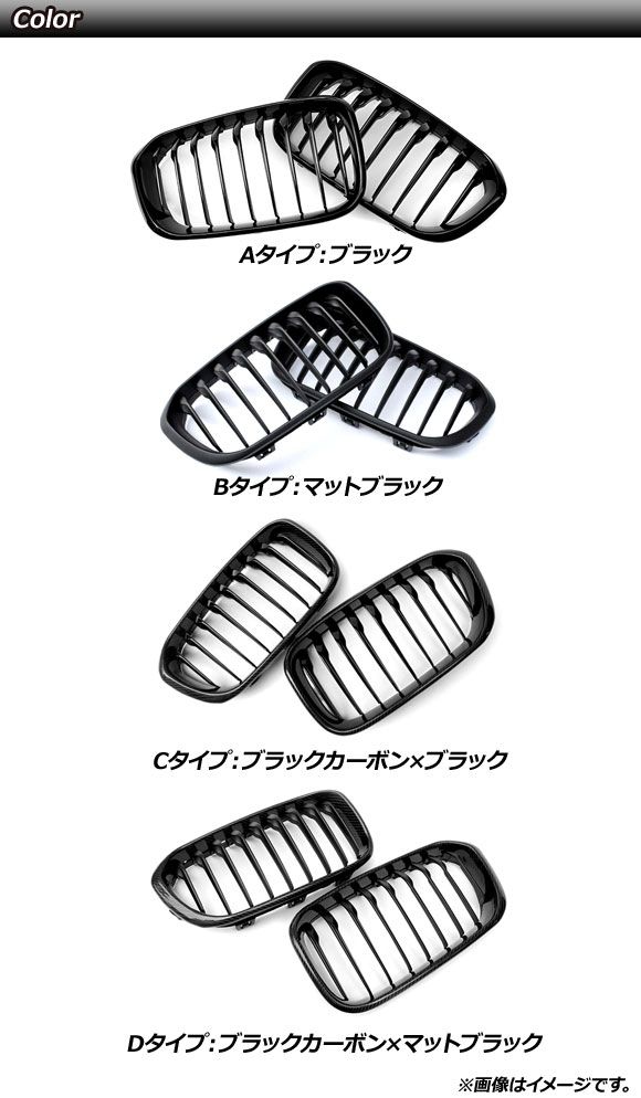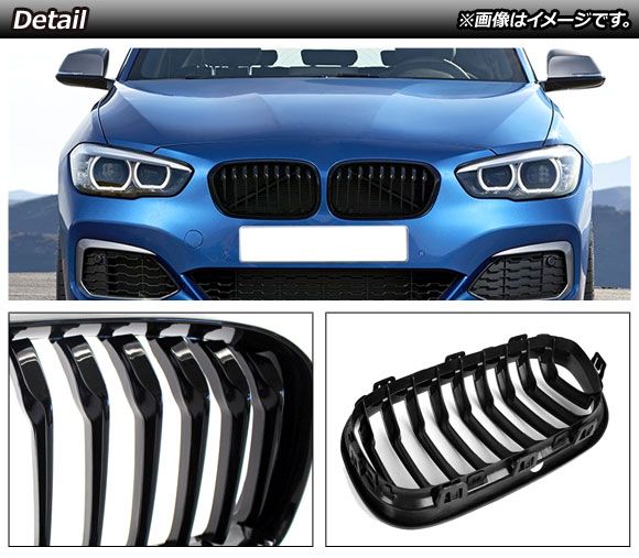 フロントグリルカバー BMW 1シリーズ F20/F21 後期 2015年〜2019年 ブラック Aタイプ ABS製 シングルバー 入数:1セット(2個) AP-FG303-A