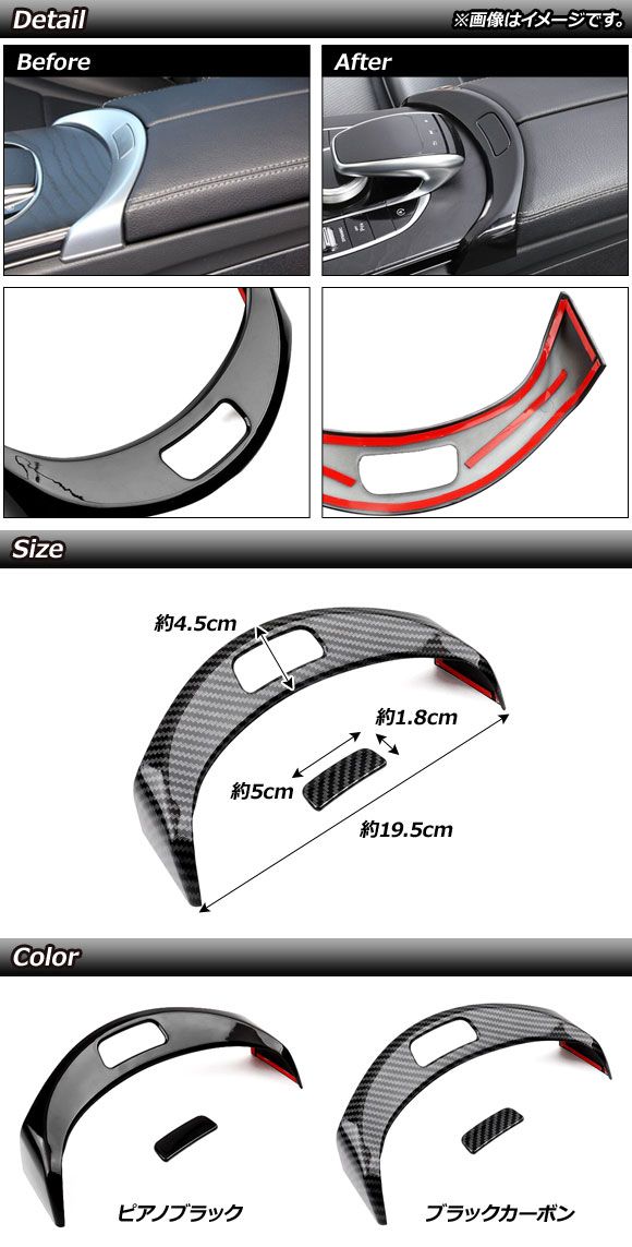 コンソールボックススイッチカバー メルセデス・ベンツ Cクラス W205/C205/A205 2014年〜 ブラックカーボン ABS製 入数:1セット(2個) AP-IT1213-BKC