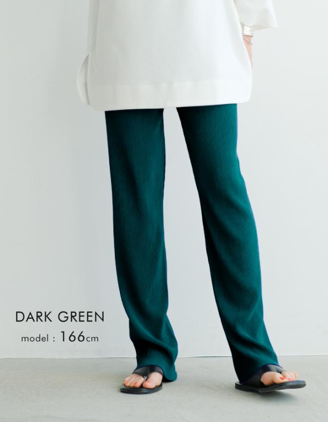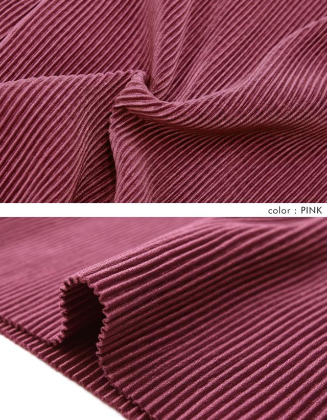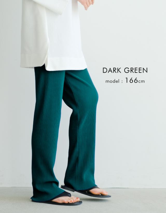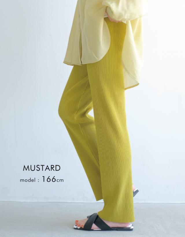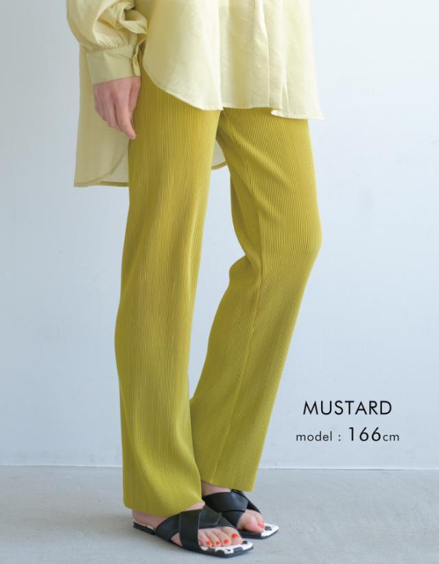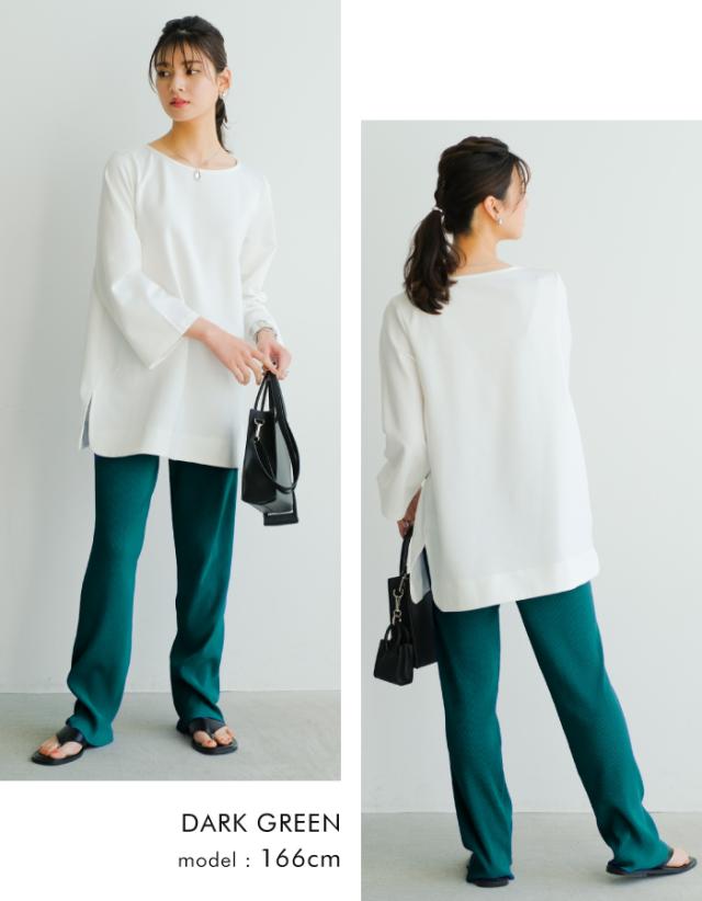 プリーツが表情豊かで、楽ちんなのに洒落感もある優秀なアイテム。光沢のないマットな生地感が大人の落ち着いた印象を演出。長を強調してくれるプリーツ素材ならではの足長効果も期待◎