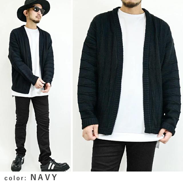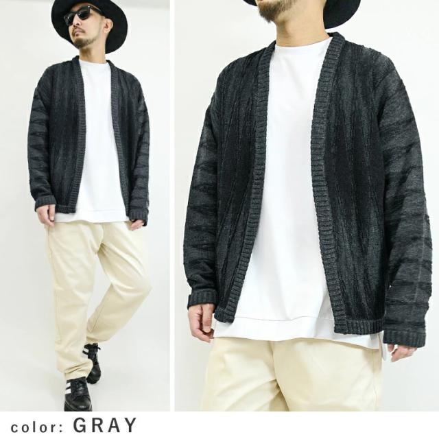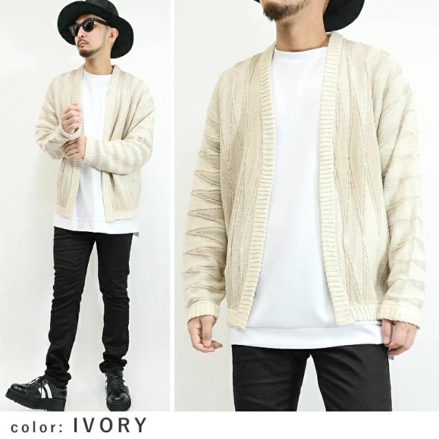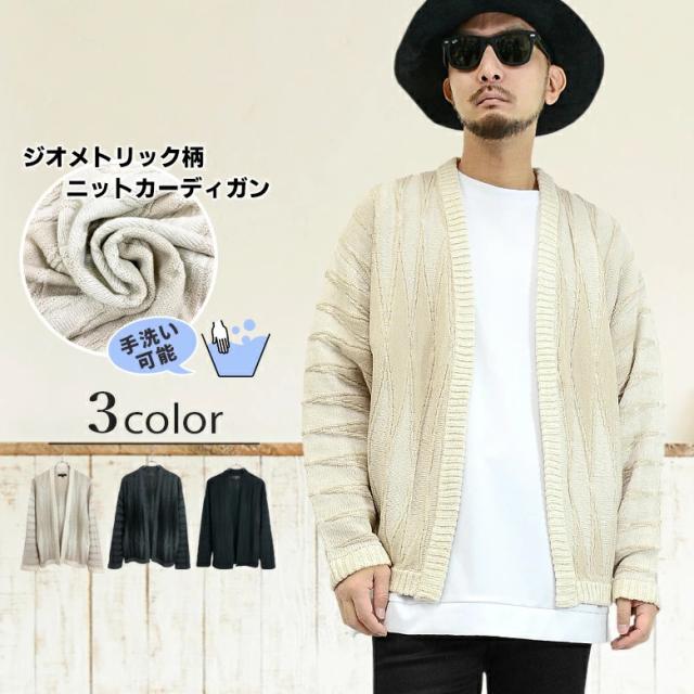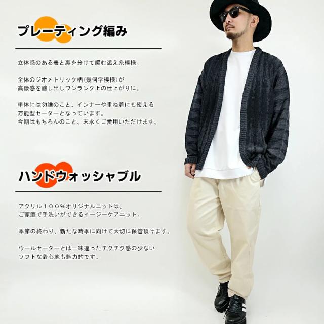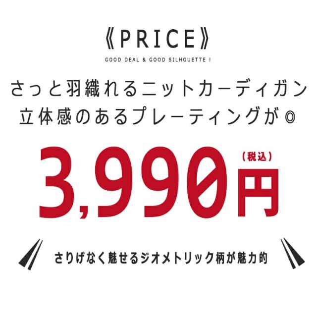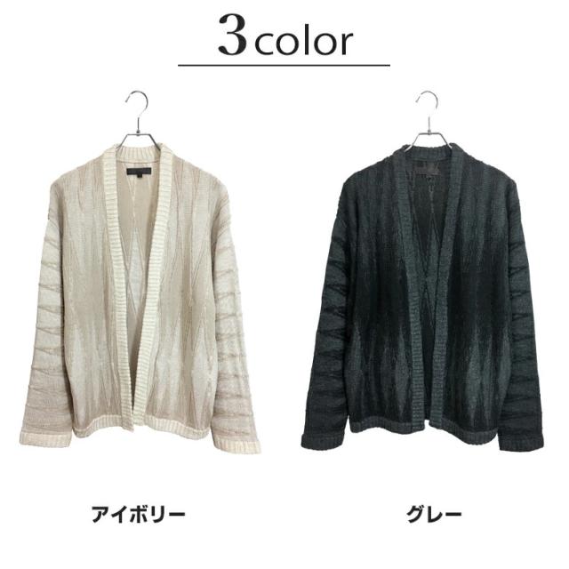 【閉店セール】ジオメトリック柄ボタンレス ニットカーディガン 8093n431 ニットカーディガン プレーティング ジオメトリック 幾何学模様 長袖 ハンドウォッシャブル アイボリー グレー ネイビー ミドルゲージ ノーカラー ボタンレス カジュアル 韓国ファッション