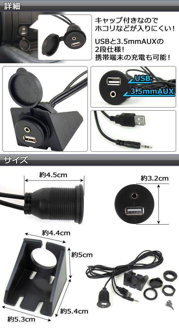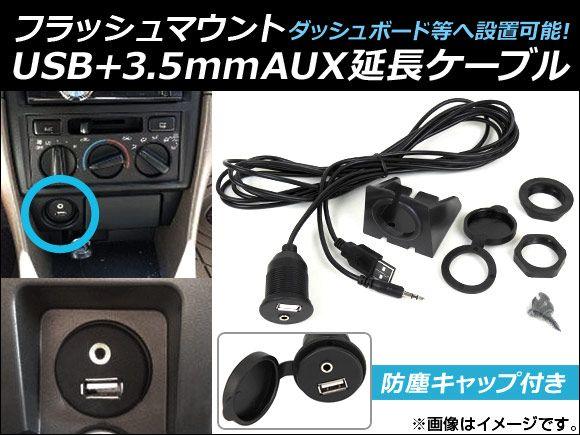 AP フラッシュマウント USB+3.5mmAUX延長ケーブル 汎用 ダッシュボード等に設置可能! AP-EC055