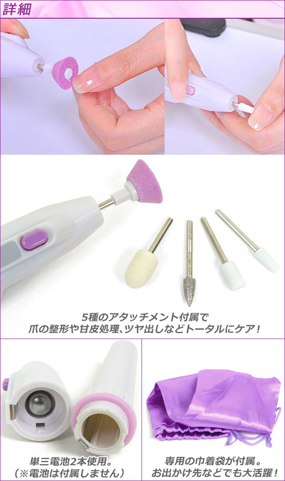 ご自宅で簡単・手軽にネイルケア! アタッチメントは5種類付属♪