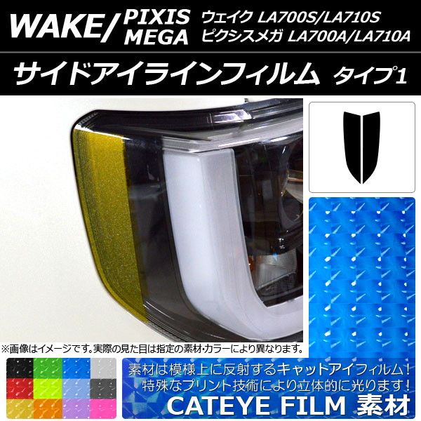 サイドアイラインフィルム キャットアイタイプ タイプ1 ダイハツ/トヨタ ウェイク/ピクシスメガ LA700系 選べる12カラー 入数:1セット(2枚) AP-YLCT090 カラー: ブラック レッド ブルー イエロー グリーン オレンジ パープル ピンク クリア ライトイエロー ライトブルー ライトブラック