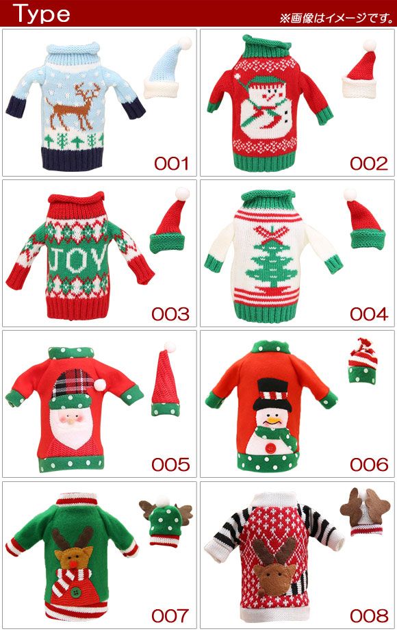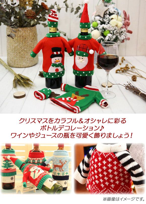 AP ボトルデコレーション クリスマスデザイン カバー セーター&帽子 MerryChristmas♪ 選べる8バリエーション AP-UJ0407 バリエーション: タイプ001 タイプ002 タイプ003 タイプ004 タイプ005 タイプ006 タイプ007 タイプ008