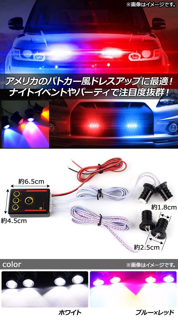 LEDストロボライト キット セット ポリスライト LED ランプ ライト 点灯 点滅 発光 ストロボ フラッシュ コントローラー リモコン 4連 4発 汎用 ポジション デイライト デイタイムライト ランニングライト ランニングランプ 警告灯 イルミネーション イルミ ファッションライト ドレスアップ カスタム カスタマイズ 電装パーツ 電装 電飾 装飾 イベント パーティー レーシングカー イベントカー パトカー ポリス 海外警察 警察 アメリカ USAポリス アメリカンポリス パトランプ 赤 RED 青 BLUE 白 WHITE 4580066694420 4580066694437 青 赤 BLUE RED automobile motorcar オートモービル モーターカー カー 車 自動車 車両 motorcycle motorbike autobicycle バイク モーターバイク モーターサイクル モーター サイクル オートバイ 2輪車 二輪 二輪車 501458870