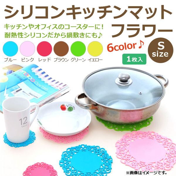AP シリコンキッチンマットフラワー Sサイズ 耐熱性シリコン製 キッチンやオフィスのコースターに! 選べる6カラー AP-KK0011-FS1