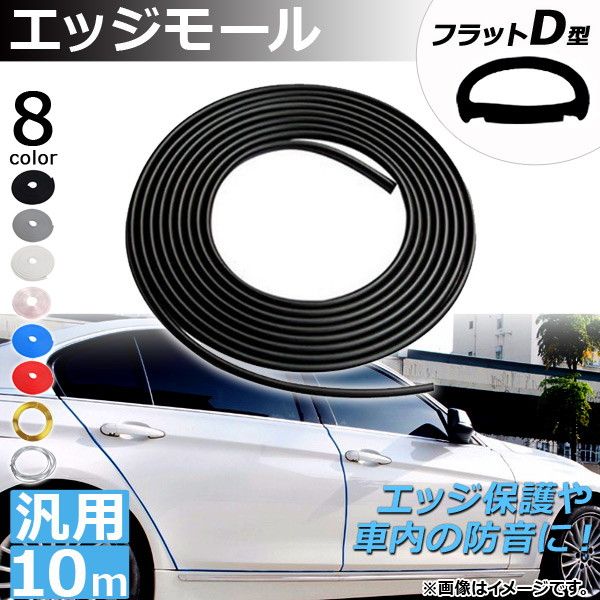エッジモール 10M フラットD型 汎用 ラバー製 エッジ保護や車内の防音に! 選べる8カラー AP-DG037-FLD-10M