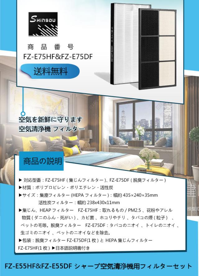●シャープ空気清浄機用集塵フィルター ( HEPAフィルター )FZ-E75HF と 脱臭フィルター FZ-E75DF 1セット