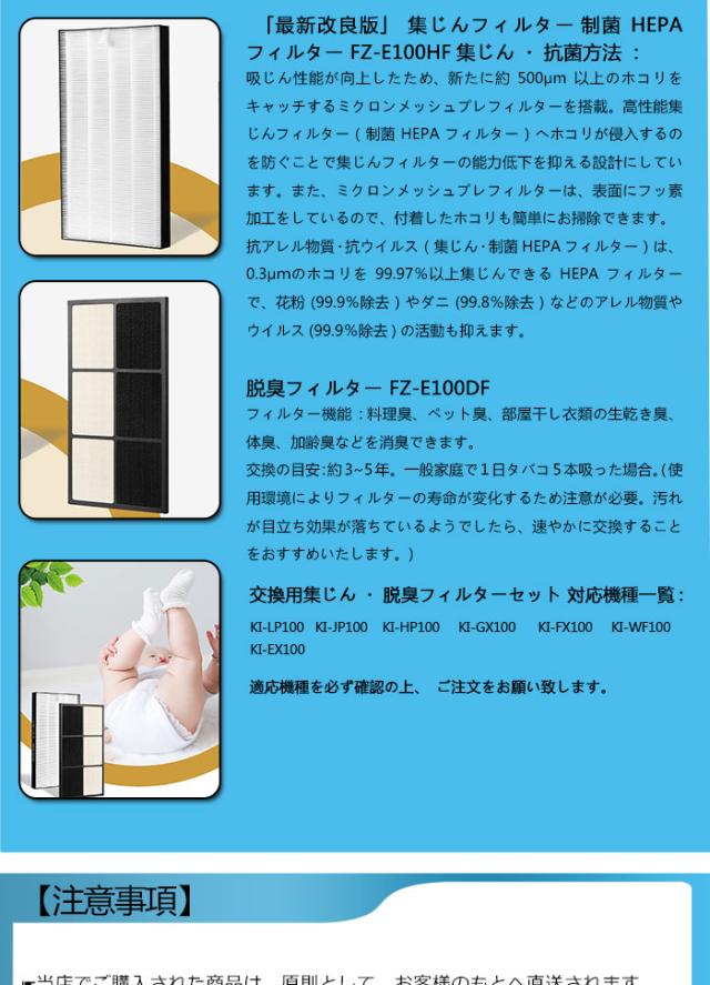 シャープ FZ-E100HF FZ-E100DF 合計2枚入り フィルター 集じんフィルター 最新改良版 sharp 空気清浄機 fze100hf脱臭フィルター 集塵フィルター fze100df KI-LP100 KI-JP100 KI-HP100 加湿空気清浄機 互換品