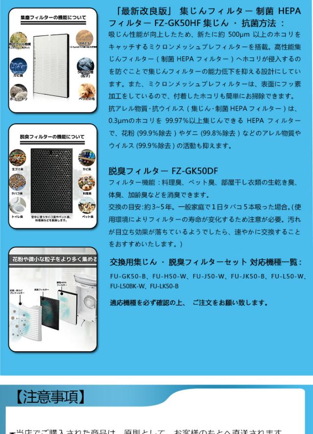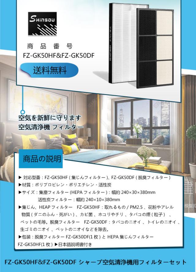 シャープ空気清浄機 交換フィルター 集じんフィルター FZ-GK50HF FZGK50HF HEPAフィルター 脱臭フィルター FZ-GK50DF FZGK50DF 集塵 消臭 2枚セット FU-GK50 FU-H50 FU-J50 FU-JK50 FU-L50 FU-L50BK FU-LK50 互換品