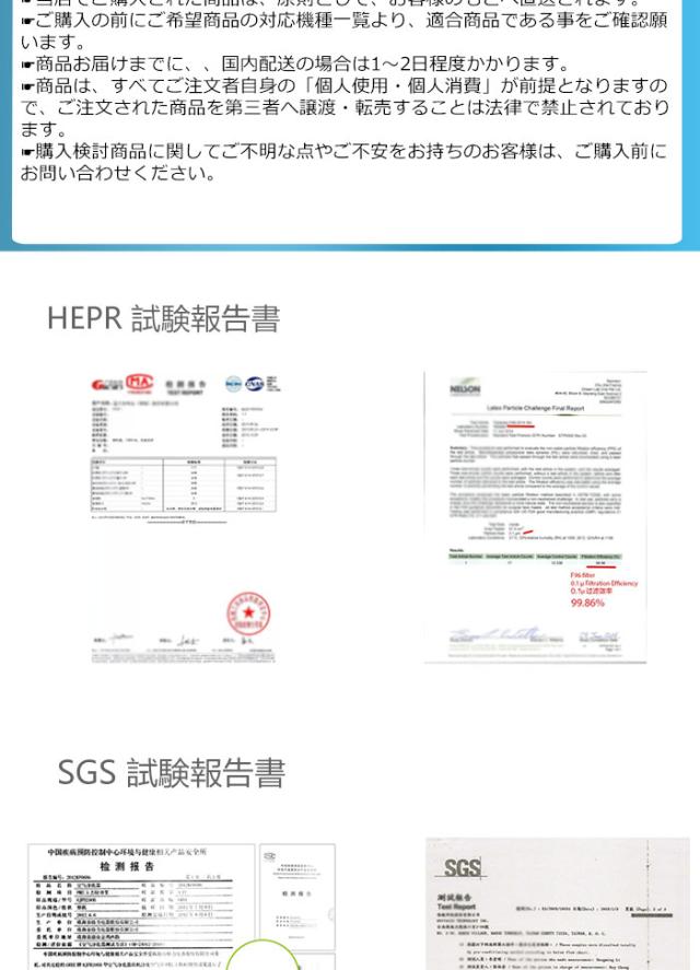 素材:ポリプロピレン・ポリエチレン・活性炭 サイズ: 集塵フィルター(HEPAフィルター):幅約240×30×380mm 活性炭フィルター:幅約240×10×380mm |