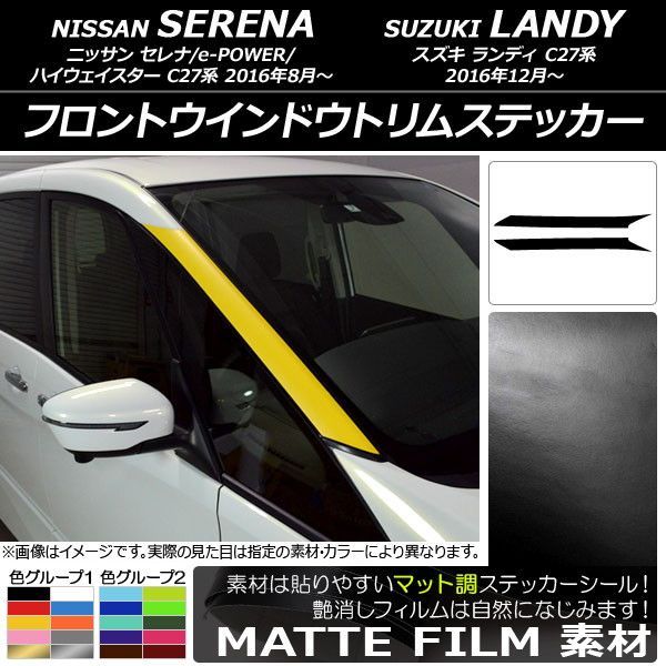 フロントウインドウトリムステッカー ニッサン/スズキ セレナ/ランディ C27系 マット調 色グループ2 AP-CFMT3828 入数:1セット(2枚)