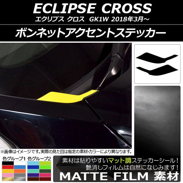 ボンネットアクセントステッカー マット調 ミツビシ エクリプス クロス GK1W 2018年03月〜 色グループ1 入数:1セット(2枚) AP-CFMT3720 色グループ1: ブラック ホワイト レッド ブルー イエロー オレンジ ピンク グレー ゴールド シルバー