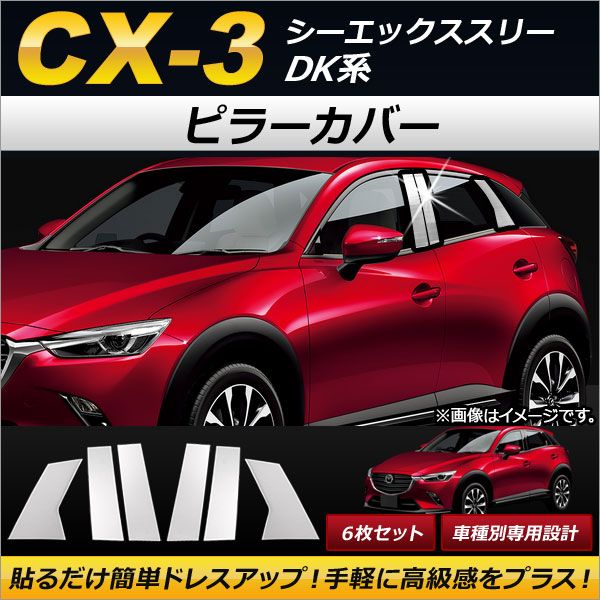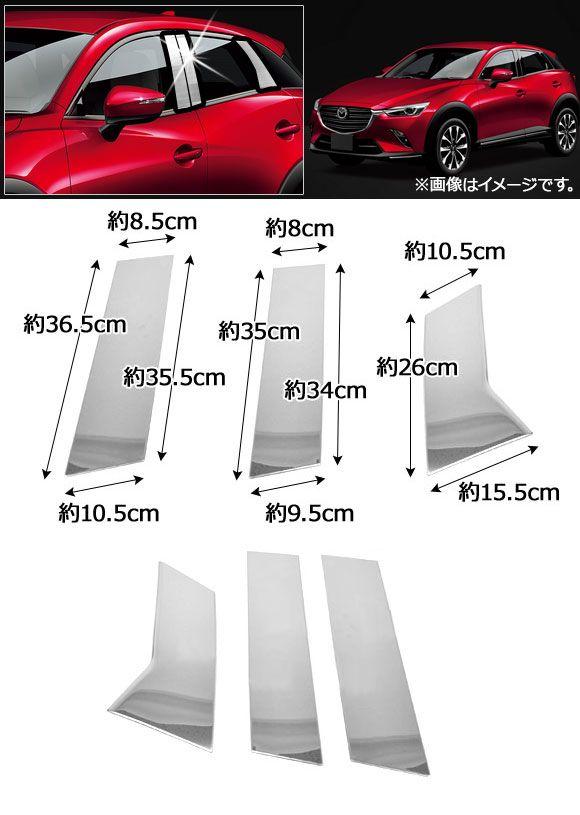 ピラーカバー マツダ CX-3 DK系(DK5FW,DK5AW) サイドバイザー無し車用 2015年02月〜 ステンレス製 AP-DG069 入数:1セット(6個)