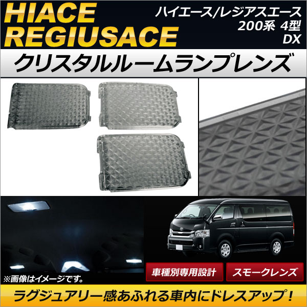 クリスタルルームランプレンズ トヨタ ハイエース/レジアスエース 200系(KDH/TRH2##) 4型 DX 2013年12月〜 スモーク 入数:1セット(3個) AP-RU044-SM