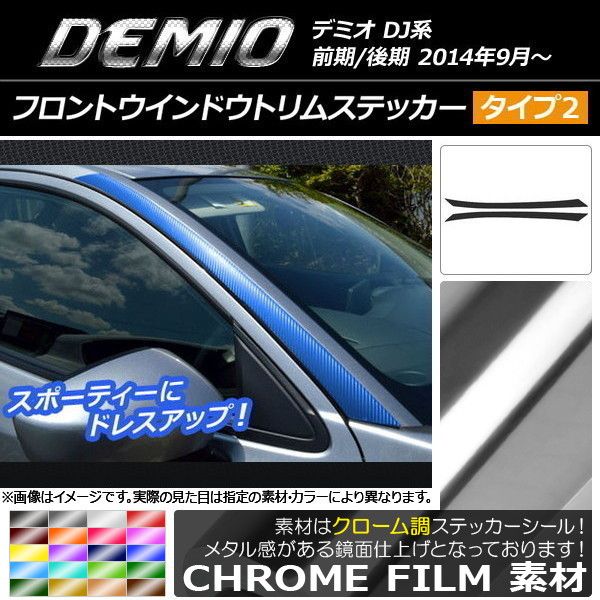 フロントウインドウトリムステッカー マツダ デミオ DJ系 前期/後期 クローム調 タイプ2 選べる20カラー AP-CRM1305 入数:1セット(2枚)