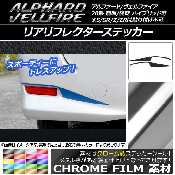 リアリフレクターステッカー トヨタ アルファード/ヴェルファイア 20系 前期/後期 クローム調 選べる20カラー AP-CRM735 入数:1セット(2枚)