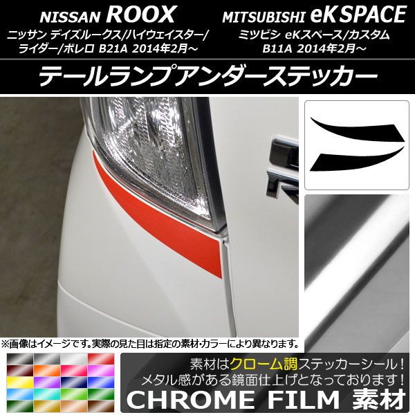 テールランプアンダーステッカー クローム調 ニッサン/ミツビシ デイズルークス/eKスペース B21A/B11A 選べる20カラー 入数:1セット(2枚) AP-CRM3548