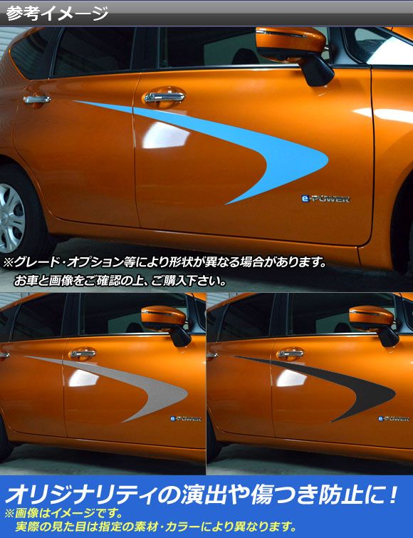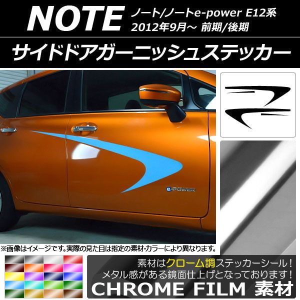 AP サイドドアガーニッシュステッカー クローム調 ニッサン ノート/ノートe-power E12系 前期/後期 2012年09月〜 選べる20カラー AP-CRM3291 入数:1セット(4枚)