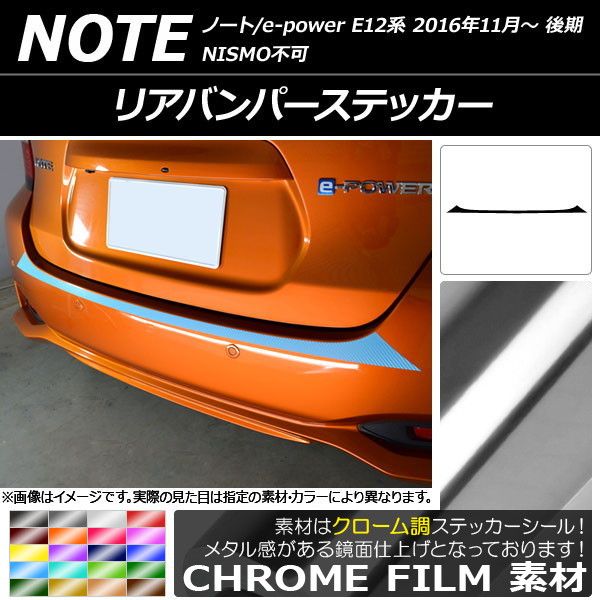 リアバンパーステッカー ニッサン ノート/ノートe-power E12系 後期 2016年11月〜 クローム調 選べる20カラー AP-CRM3315
