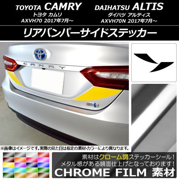 リアバンパーサイドステッカー トヨタ/ダイハツ カムリ/アルティス XV70系 2017年07月〜 クローム調 選べる20カラー AP-CRM3127 入数:1セット(2枚)
