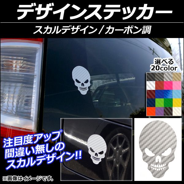 デザインステッカー カーボン調 スカルデザイン 選べる20カラー AP-CF045 カラー: ブラック ホワイト レッド ブルー イエロー グリーン オレンジ パープル ピンク ネイビー ブラウン ボルドー クリア ゴールド シルバー ガンメタリック マゼンタ ダークグリーン メタリックブルー ライトブルー