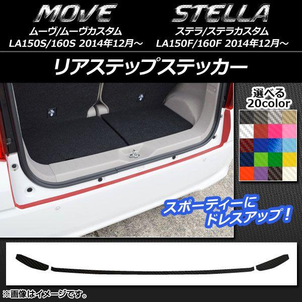 リアステップステッカー カーボン調 ムーヴ/カスタム,ステラ/カスタム LA150/LA160 選べる20カラー 入数:1セット(3枚) AP-CF1198 カラー: ブラック ホワイト レッド ブルー イエロー グリーン オレンジ パープル ピンク ネイビー ブラウン ボルドー クリア ゴールド シルバー ガンメタリック マゼンタ ダークグリーン メタリックブルー ライトブルー