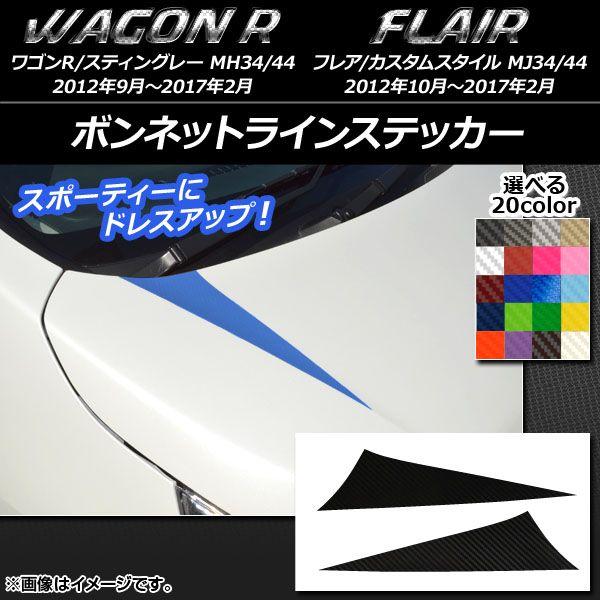 ボンネットラインステッカー スズキ/マツダ ワゴンR/スティングレー,フレア/カスタムスタイル カーボン調 選べる20カラー 入数:1セット(2枚) AP-CF977
