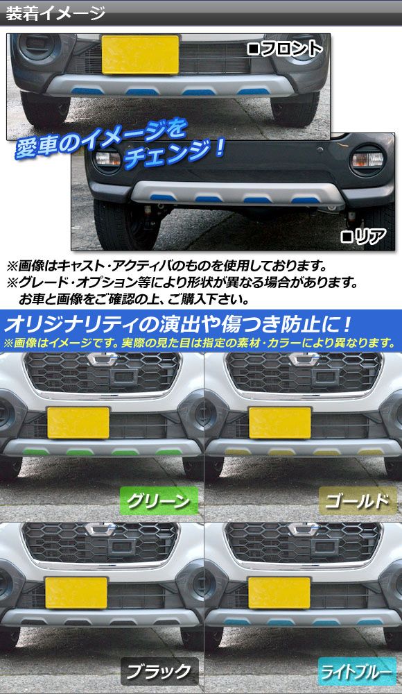 バンパーアンダーステッカー カーボン調 フロント・リア用 ダイハツ キャスト アクティバ / トヨタ ピクシスジョイ C 選べる20カラー 入数:1セット(8枚) AP-CF792