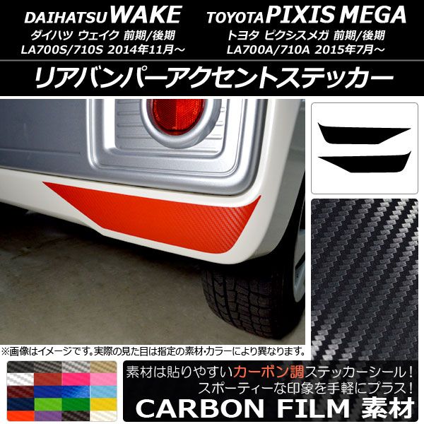 リアバンパーアクセントステッカー トヨタ ウェイク/ピクシスメガ LA700系 2014年11月〜 カーボン調 ダイハツ/☆ 選べる20カラー AP-CF3022 入数:1セット(2枚)