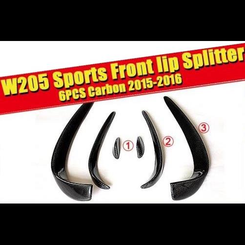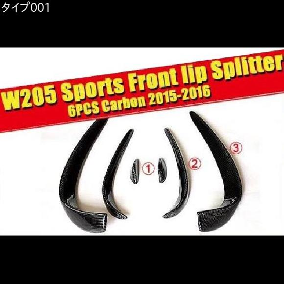 AL 車用外装パーツ W205 スポーツ C63AMG フロント カナード スポイラー 6個 カーボン C180 C200 C250 リップ スプリッター ウイング エア フロー 吹き出し口 2015-16 タイプ001 AL-EE-0177