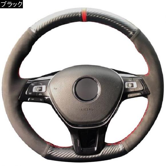 ステアリングホイールカバー 編み上げタイプ ブラックスウェード カーボンファイバー 適用: フォルクスワーゲン VW ゴルフ 7 MK7 ポロ ジェッタ パサート B8 ティグアン シャラン トゥーラン ブラック AL-FF-0453 AL