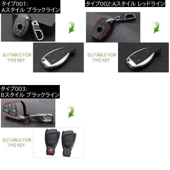 レザー キー ケース キー ホルダー 適用: メルセデス ベンツ AMG W203 W210 W211 W124 W202 W204 W205 W212 A B C E S R GLE CLA GLC GLA クラス Aスタイル ブラックライン〜Bスタイル ブラックライン AL-EE-9530 AL