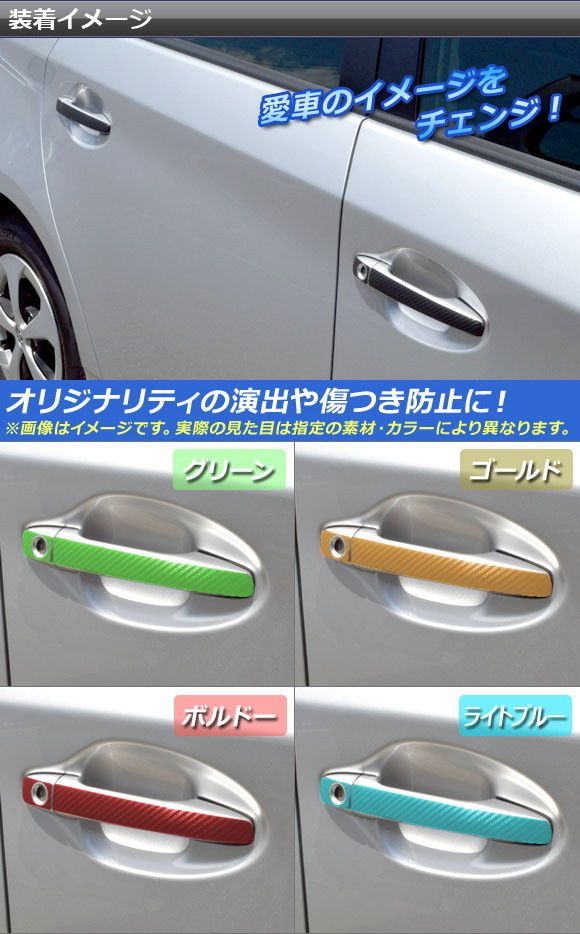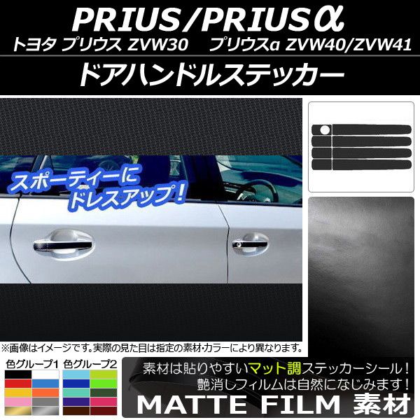 ドアハンドルステッカー マット調 トヨタ プリウス/プリウスα ZVW30/ZVW40系 前期/後期 2009年05月〜 色グループ1 入数:1セット(8枚) AP-CFMT153 色グループ1: ブラック ホワイト レッド ブルー イエロー オレンジ ピンク グレー ゴールド シルバー
