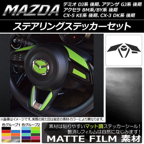 ステアリングステッカーセット マツダ デミオ DJ系、アクセラ BM系/BY系、アテンザ GJ系、CX-3 DK系、CX-5 KE系 後期 マット調 色グループ1 AP-CFMT1364