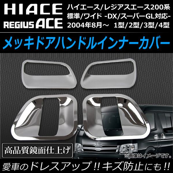 メッキドアハンドルインナーカバー トヨタ ハイエース/レジアスエース 200系 標準/ワイドボディ 1型/2型/3型/4型 2004年08月〜 APHC200-SR 入数:1セット(4ピース)
