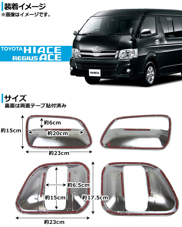 AP メッキドアハンドルインナーカバー APHC200-SR 入数:1セット(4ピース) トヨタ ハイエース/レジアスエース 200系 標準/ワイドボディ 1型/2型/3型/4型 2004年08月〜