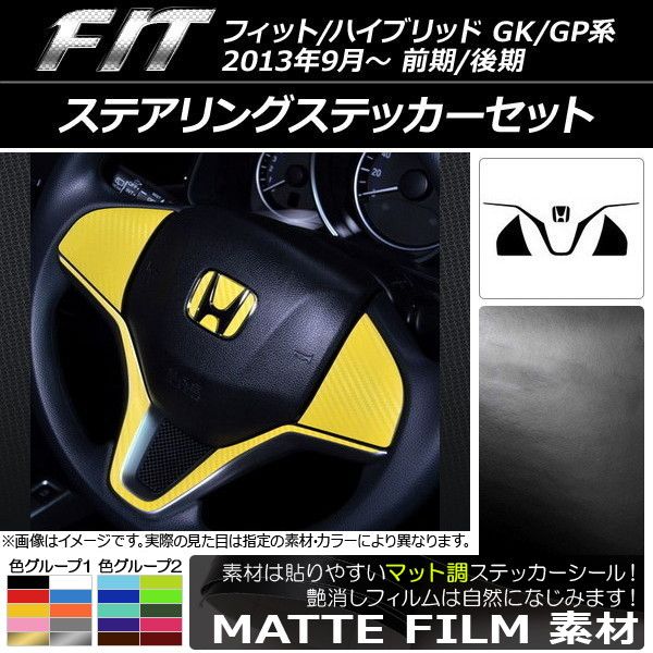 AP ステアリングステッカーセット マット調 ホンダ フィット/ハイブリッド GK系/GP系 前期/後期 ボタン無し車用 2013年09月〜 色グループ2 AP-CFMT2385