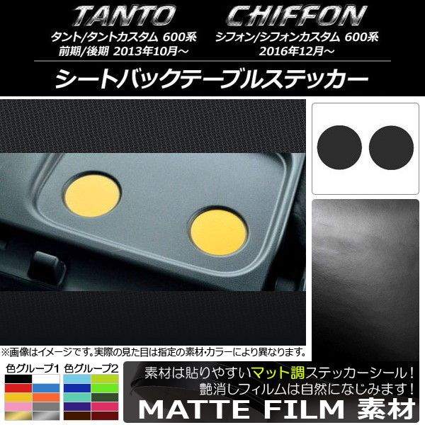 シートバックテーブルステッカー ダイハツ/スバル タント/カスタム,シフォン/カスタム 600系 マット調 色グループ2 入数:1セット(2枚) AP-CFMT951