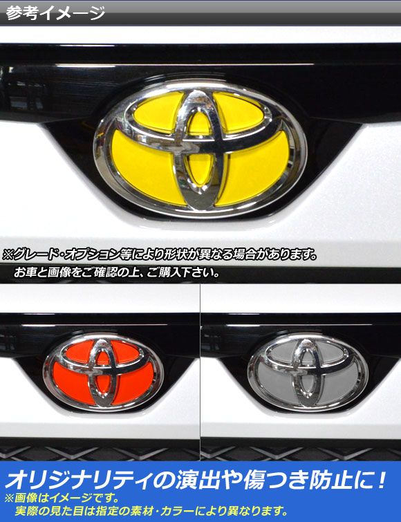 エンブレムステッカー マット調 トヨタ汎用タイプ フロント/リアどちらかに使用可能 色グループ2 AP-CFMT892 色グループ2: ブラック パープル ブラウン ボルドー マゼンタ ダークグリーン ダークブルー ライトイエロー ライトグリーン ライトブルー シアン